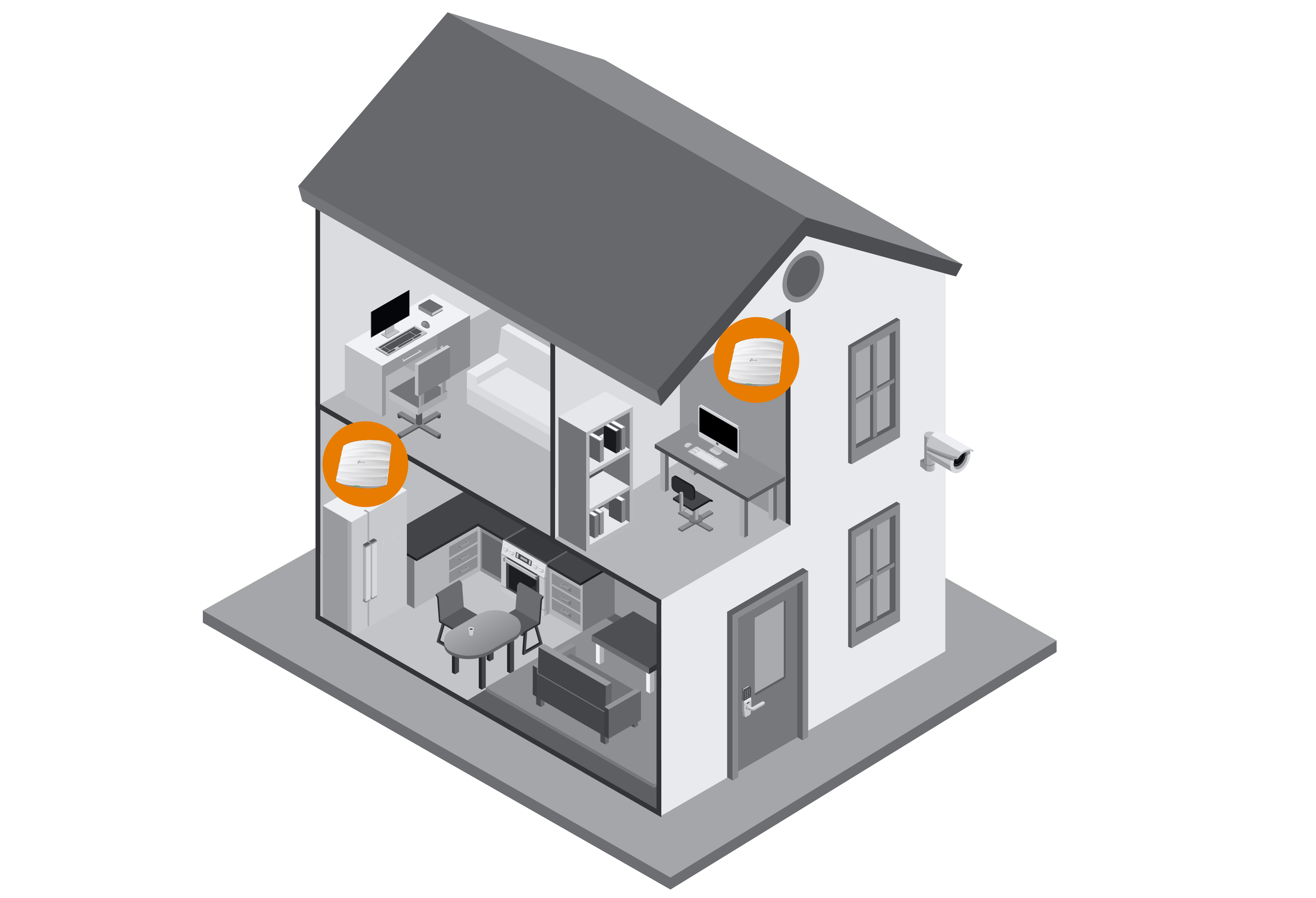 Создать бесшовную Wi-Fi-сеть (Mesh Wi-Fi) в двухэтажном частном доме (140 м²) с кирпичными стенами и бетонными перекрытиями.